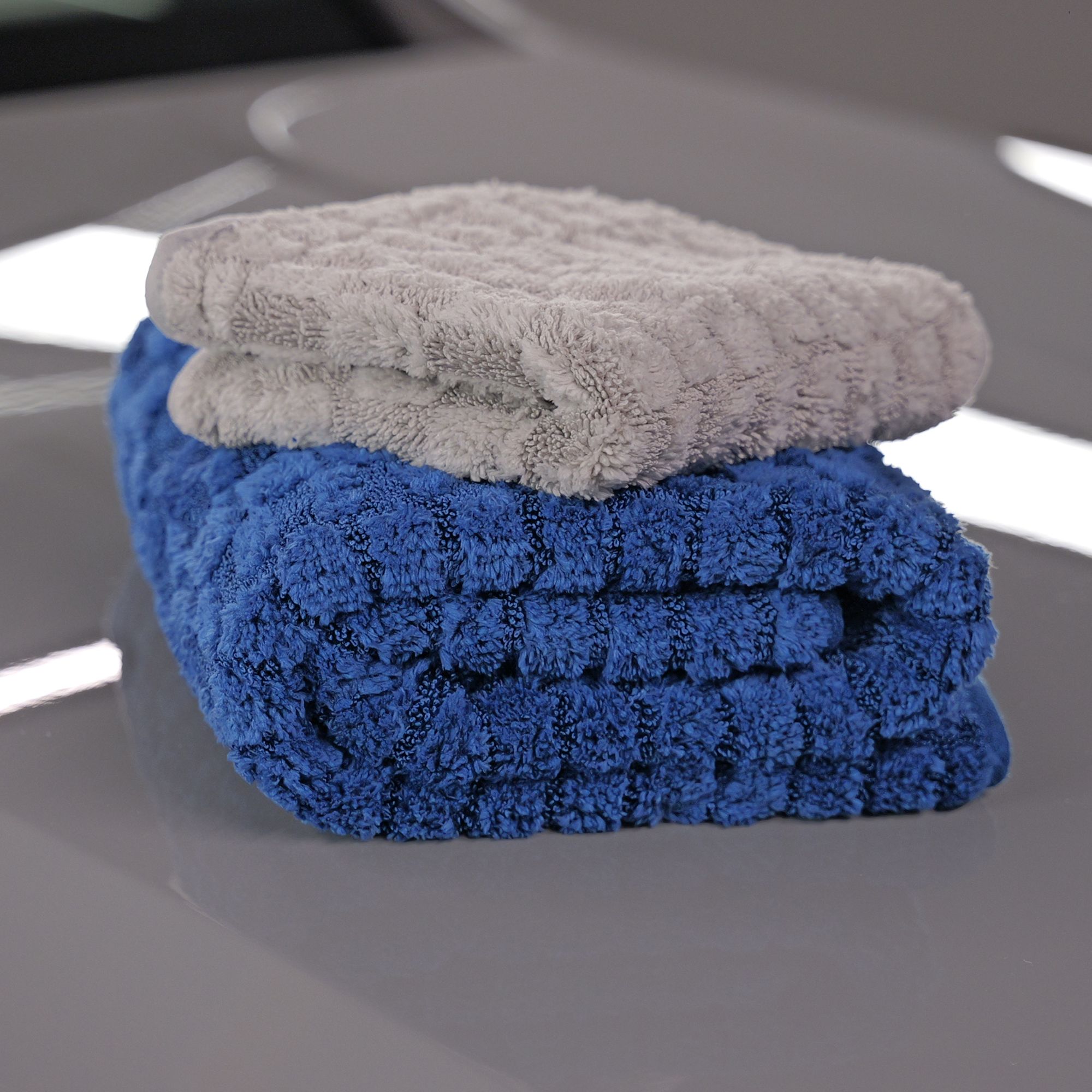 Das Trockentuch TigerShark v2 vereint maximale Saugkraft mit einem besonders sanften Griff. Durch die neue beidseitige Hybridstruktur aus gedrillten und gesplitteten Fasern trocknet das Tuch effizient und lackschonend zugleich – ganz gleich, ob per Zieh- oder Tupfmethode. Eine weitere Neuerung: Der superweiche Velour-Mikrofaser-Rand ist jetzt farblich auf das Tuch abgestimmt. Während die Vorgängerversion noch mit schwarzem Rand daherkam, fügt sich der Rand bei der v2-Generation nun harmonisch in das Gesamtbild ein – ganz gleich ob in Icegrey oder Seablue. Die abgerundeten Ecken sorgen zudem für zusätzliche Sicherheit bei der Anwendung.